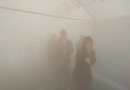 今回は防災に関するDVDを鑑賞し、煙が発生した際に視界が遮られる状態を再現した煙道体験を行いました
